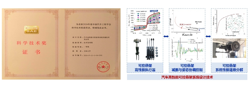 “汽车高性能可控悬架系统关键技术及应用”项目由吉林大学牵头,联合长春孔辉汽车科技股份有限公司、浙江孔辉汽车科技有限公司、一汽东机工减振器有限公司等单位共同完成。项目团队自2011年以来,在国家自然科学基金、国家重点研发计划和企业支持下,系统地突破并发明了可控悬架高性能执行器、可控悬架减振与姿态协调控制技术和可控悬架系统性能逐级分解技术。通过项目研究,攻克了可控悬架执行器系统设计难、悬架动态控制多维度协调难和可控悬架整车集成性能分解难的国际共性难题,实现了高性能可控悬架系统独立自主的正向开发。项目所形成的多项关键技术指标达到了国际领先和先进水平。项目成果应用于长安汽车、东风汽车、岚图汽车等整车和零部件企业,应用单位近3年新增销售额超过18亿,支撑浙江孔辉占2023年国内空气悬架总成市场份额的44.5%,超越威巴克和德国大陆,跃居第一名,支撑了自主品牌的强势崛起。