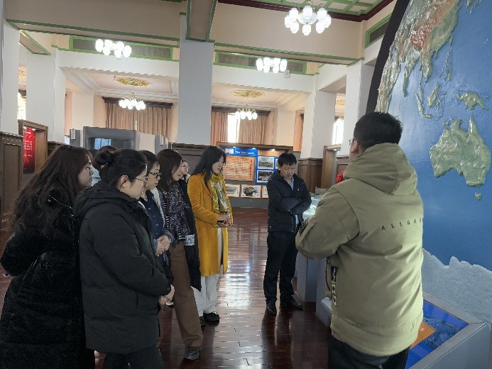 随后,党员教师们来到了吉林大学地质博物馆。这座仿古建筑以其独特的高台基、大屋顶古典彩绘手法设计,成为了长春的一道亮丽风景线。博物馆内设有地球奥秘厅、生命起源与进化厅、矿产资源厅、奇石宝玉石厅和恐龙厅等五个展厅,展示了无数生命的印迹和地球的奥秘。