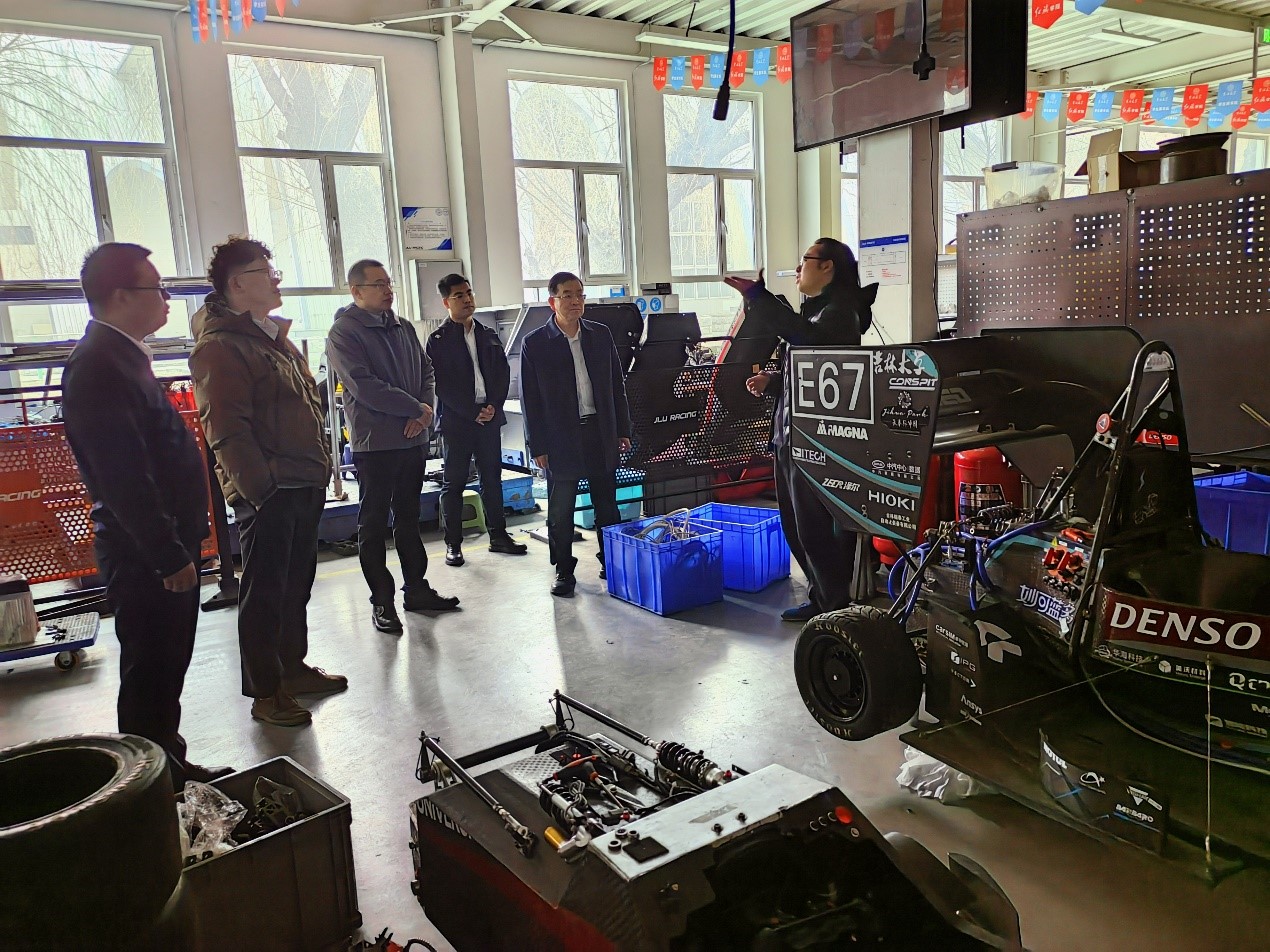 交流会后,朱冰院长陪同曲董事长一行参观了色中色 大学生车队。
