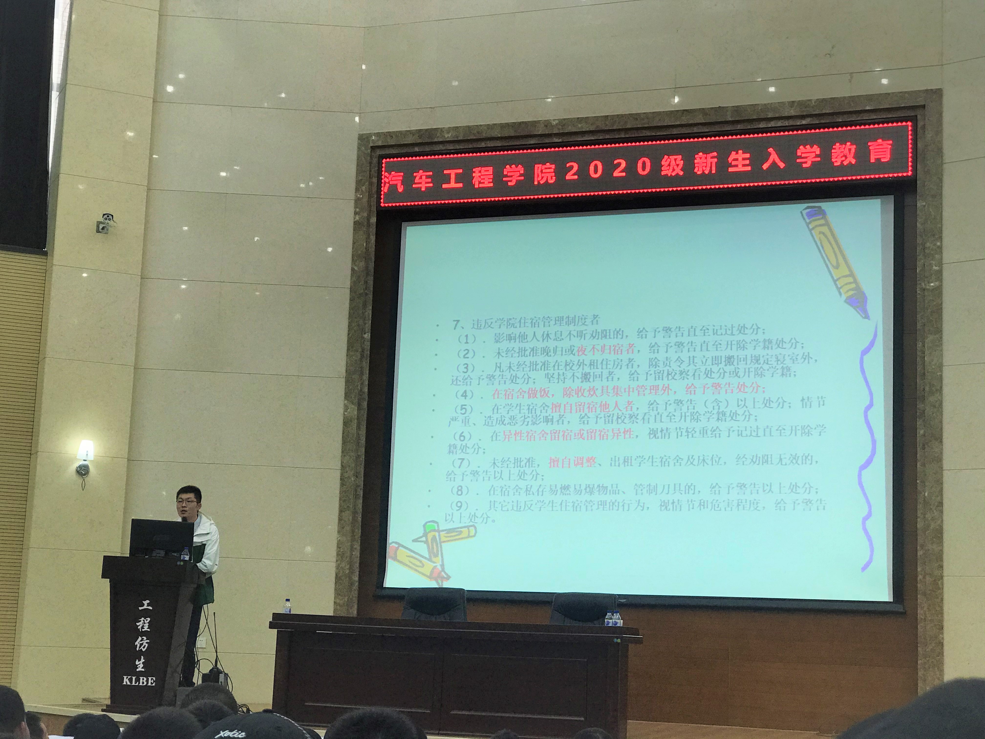 为帮助新同学了解大学校园生活,10月8日下午3点,色中色 于仿生报告厅召开了2020级新生校规校纪教育大会。2020级辅导员李季老师担任主讲人。