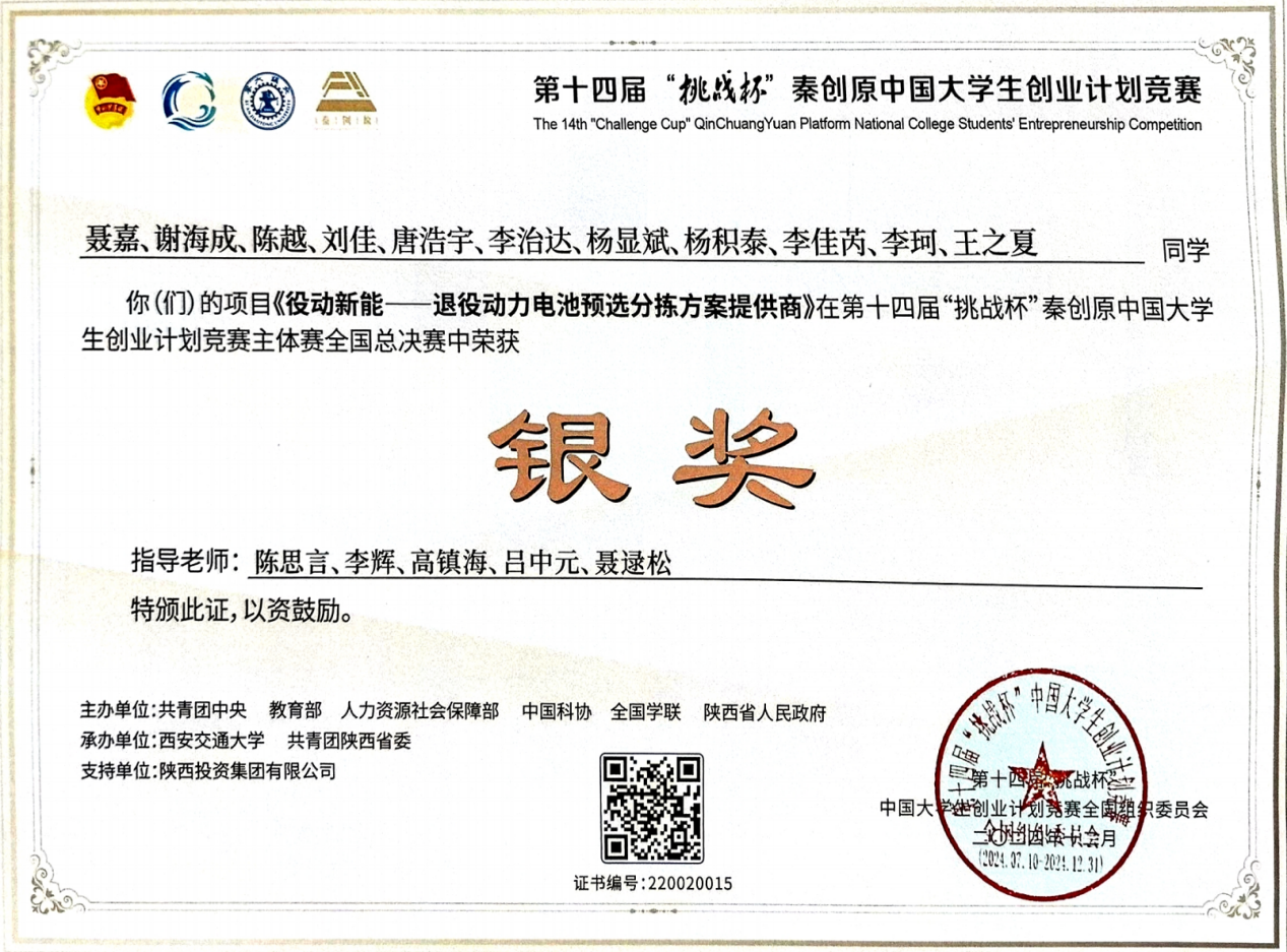 共青团2024年挑战杯“优秀指导教师”荣誉称号